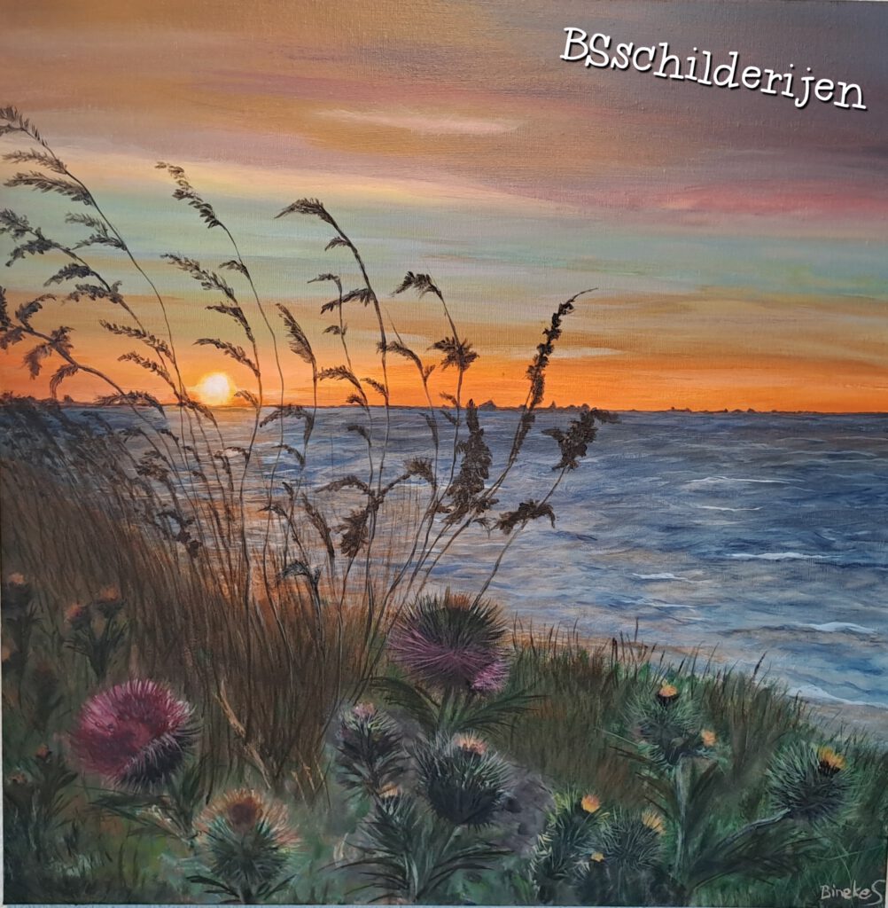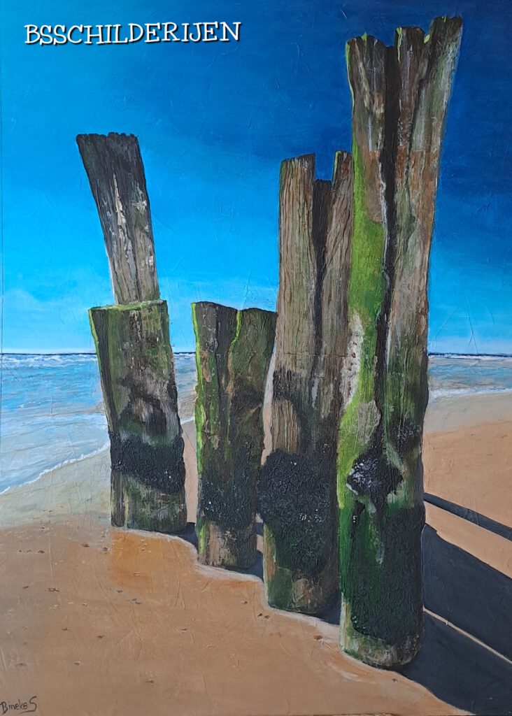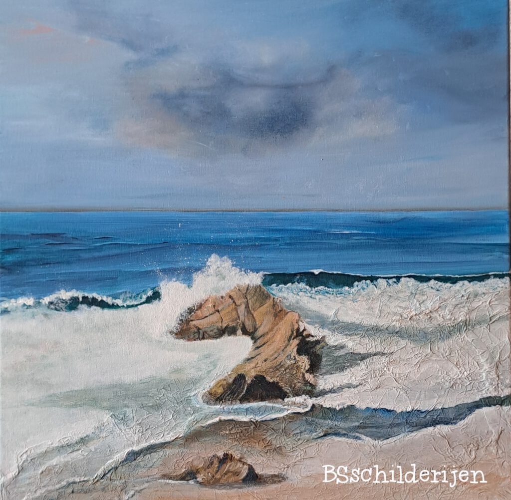 “De Stilte van de Ochtend” in Zweden 40 x 60 cmSt.Annaland; de grote Nol VERKOCHTStrandpalen 50 x 70 cmStorm op zee 40 x 40 cmZoutelande; Ondergaande zon VERKOCHTDenemarken; Strand en Duinen met gouden zonsondergang Tholen; Oesterdam Ondergaande zon Peuter waterpret meisje (verkocht)Peuter waterpret jongenverkochtStormpalen Vlisssingen ( VERKOCHT)60 x 60 cm dikte 2cm “Even weg van hier”40 x 60 cm Ondergaande zon (VERKOCHT)50 x 50 X 3cm woeste golven in Zeeland50 x 50 cm x 3 cm Golf met oog VERKOCHTBroer en zus een dagje naar zee 90 x 60 cm Avondrood 40 x 50 cm “Verstilling” (VERKOCHT)Bretagne: “Sporen van het Getij” 40 x 50 cm 3D